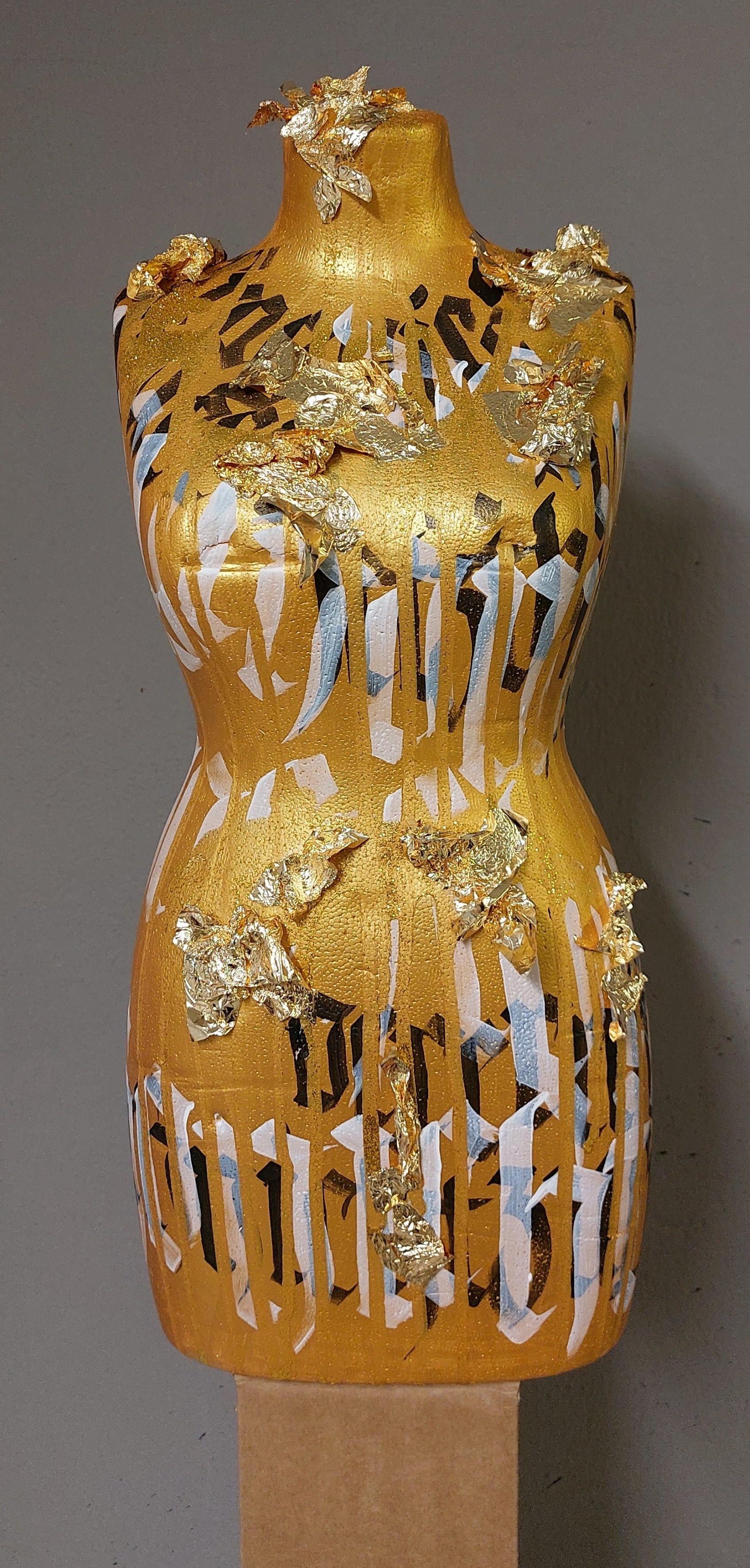 Wir nutzen als Ausgangspunkt für unsere Kunstwerke einen Torso aus Styropor, um eine künstlerische Darstellung zu schaffen, die stets sichtbar macht, wie unendlich wertvoll jeder Einzelne ist. Durch künstlerische Gestaltung mit Farbe und Schrift werden wir negatives in positives verwandeln und buchstäblich vergolden.