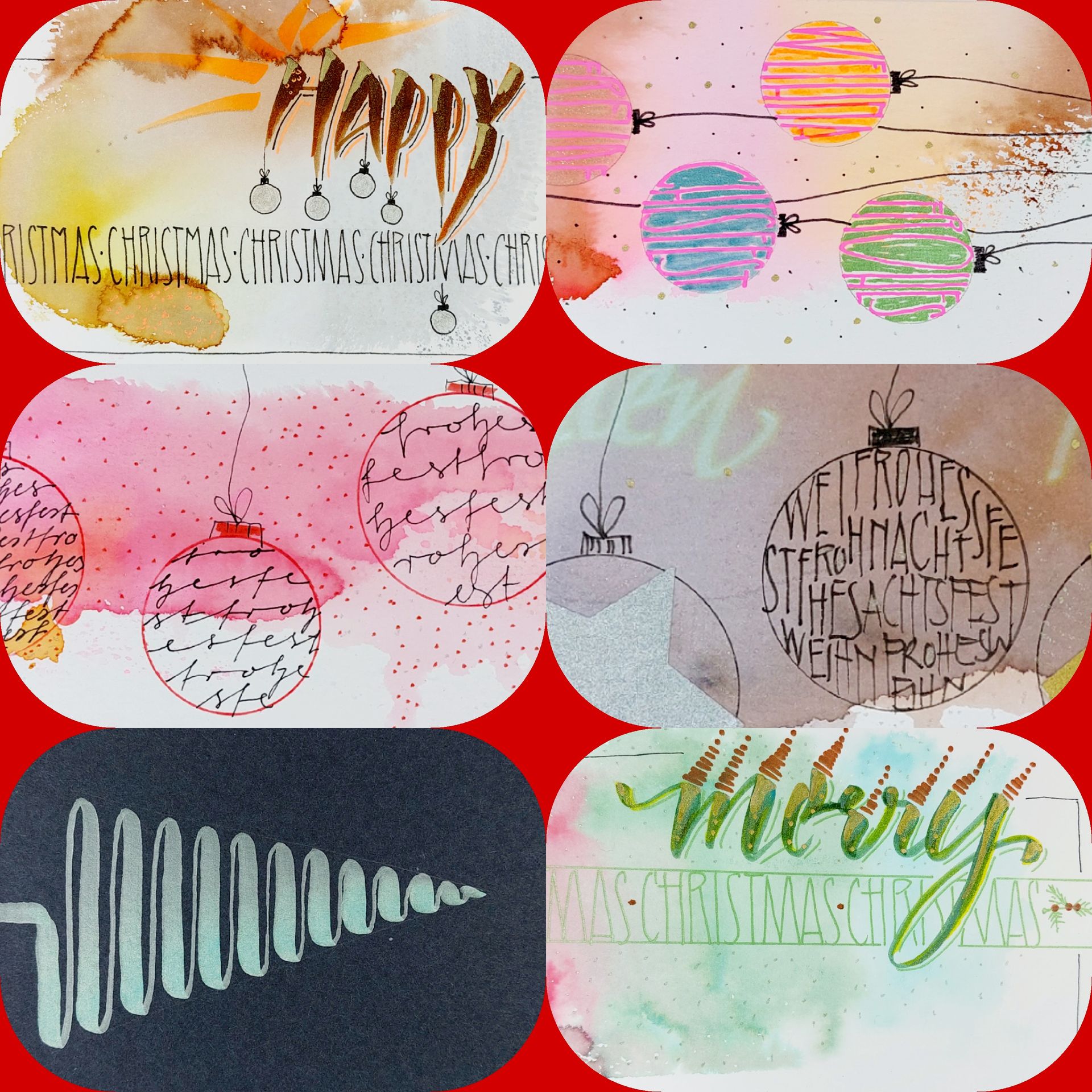 Weihnachtspost selbst gestaltet. Ein paar Stunden mit Feder Tinte. Wir geben uns dem Weihnachtszauber hin und vergessen alles um uns herum. Mit der Spitzfeder machen wir erst Übungen und gestalten dann einfache Schriften auf unserem Aquarellpapier. Diese Papiere werden wir dann weiterverarbeiten, zerschneiden, reißen, stanzen. So entstehen kleine weihnachtliche Kartenunikate und Lesezeichen, die uns und dem Beschenkten Freude machen.