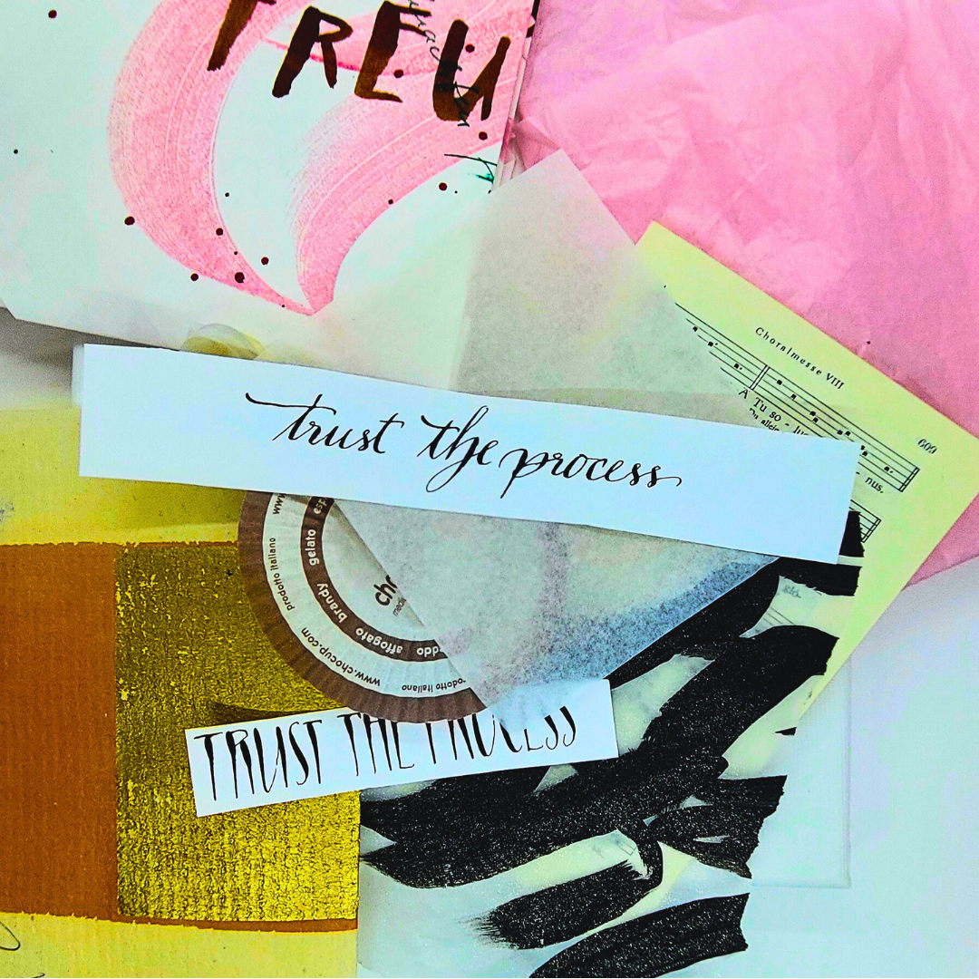 Auf den Leinwänden wird eine Reise durch die Emotionen unternommen, während wir Schrift in verschiedenen Formen und Stilen einbinden. Wir werden Worte und Sätze malen, verbergen, wiederherstellen und so das Bild mit einer vielschichtigen Bedeutung versehen. Erst wenn wir an der Oberfläche angelangt sind, werden wir mit Handschrift, Schablonen und Stempeln den Text klar und lesbar aufbringen, um das Gesamtbild zu vervollständigen.